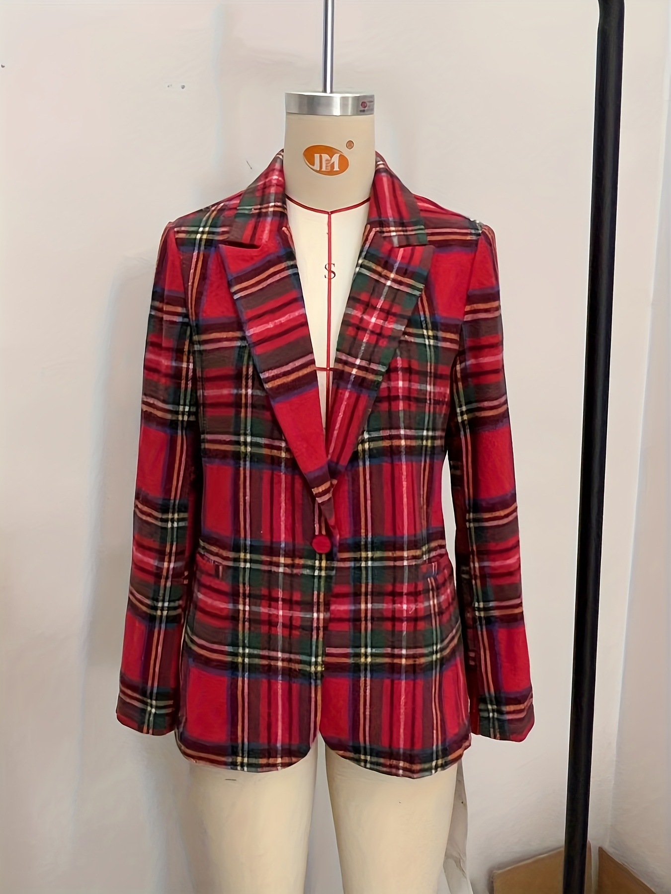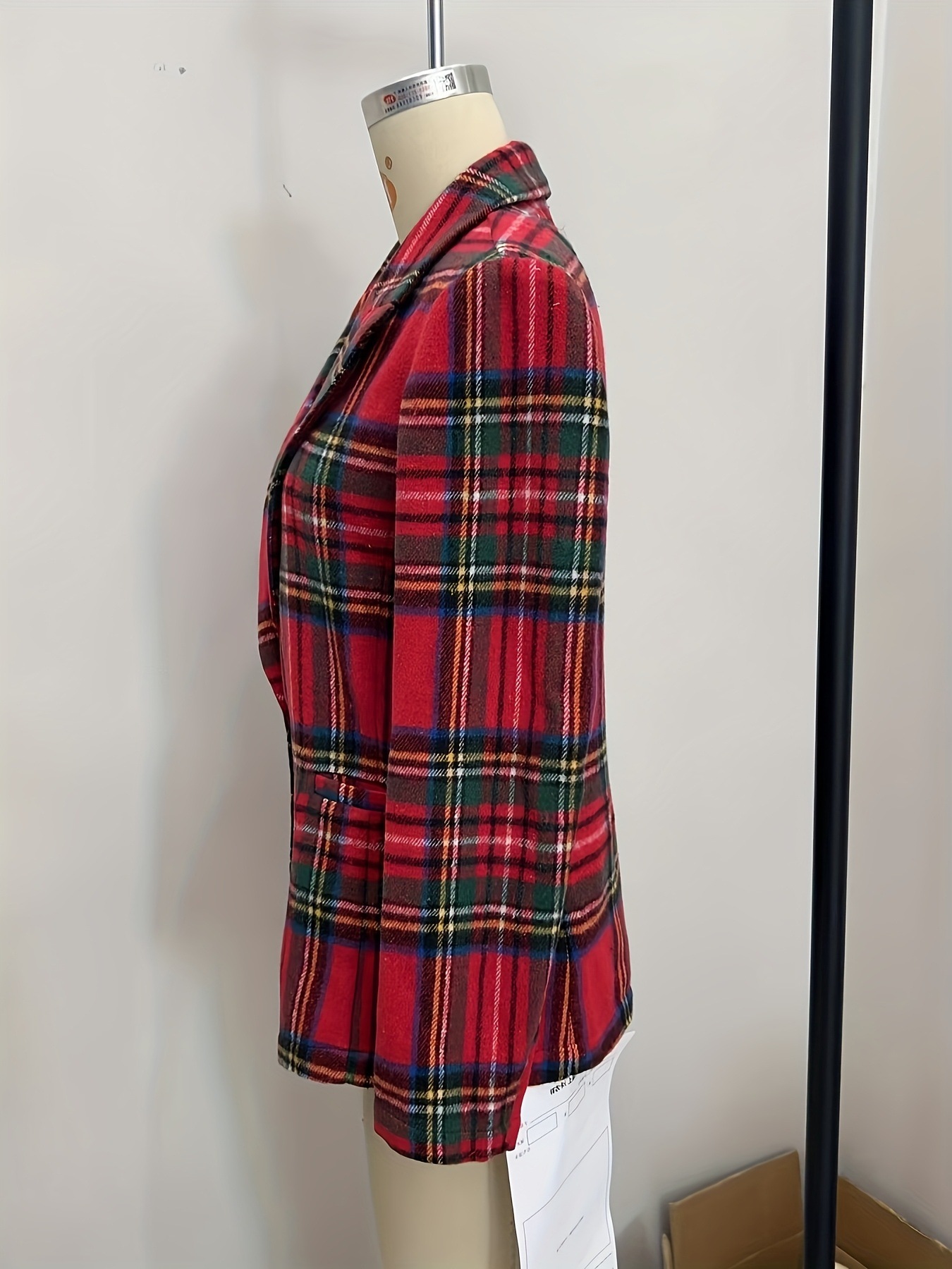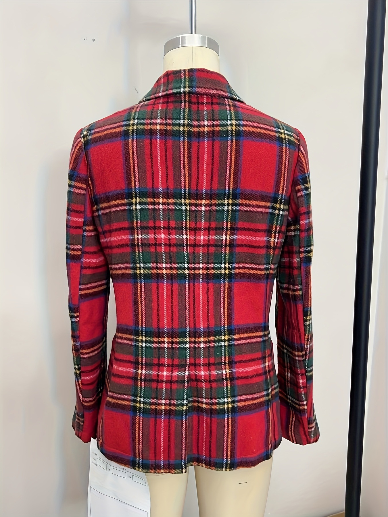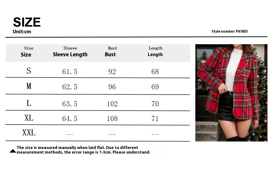 Autumn And Winter Christmas Red Plaid Long Sleeve Suit Coat