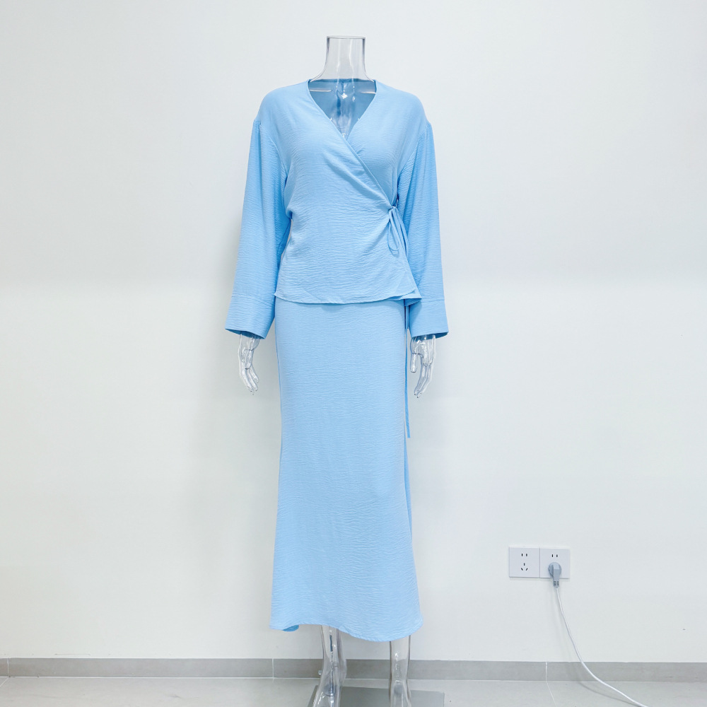 Autumn And Winter Lacing Waist-controlled Top Long Dress