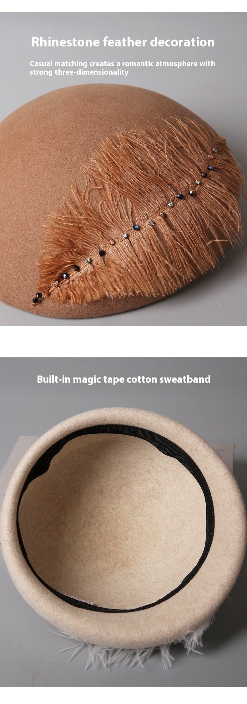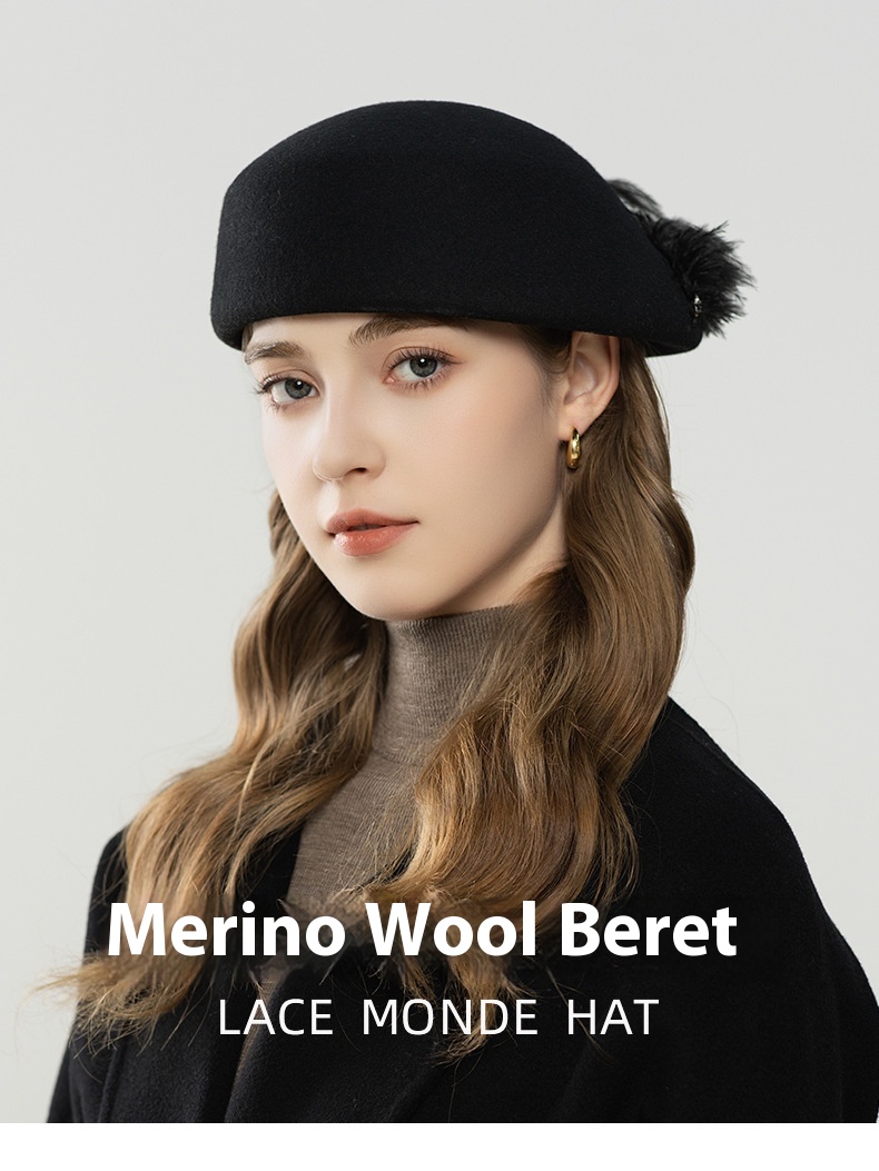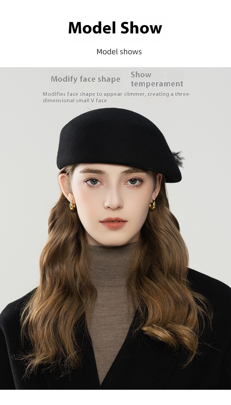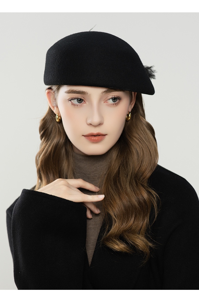 Autumn And Winter Retro Style Feather Decorative Wool Beret