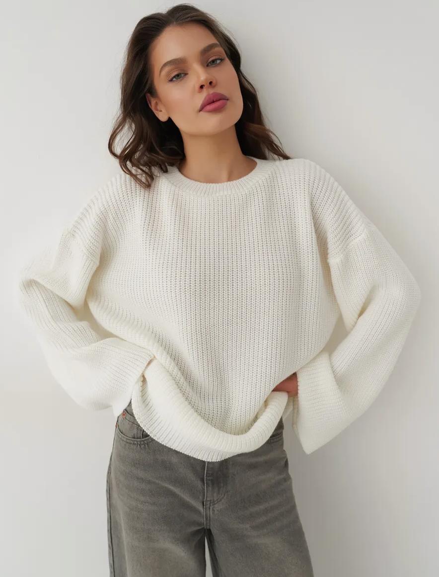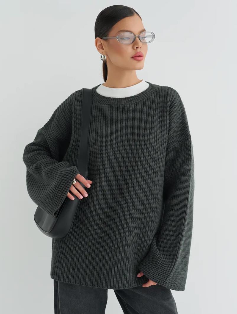 European And American Loose Autumn Winter Sweater Gray Top