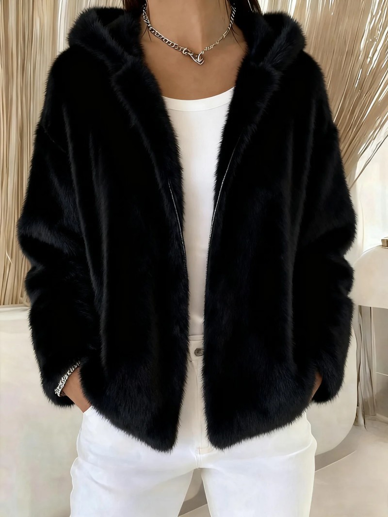 Fall Winter Hooded Solid Color Fashion Casual Zip Coat