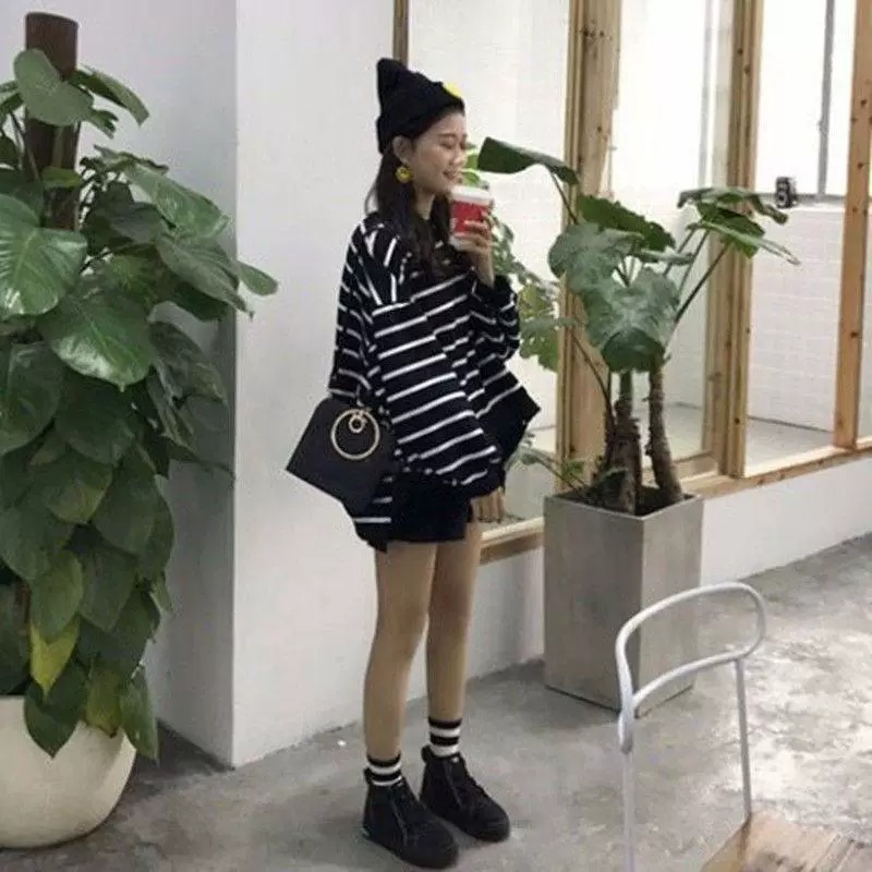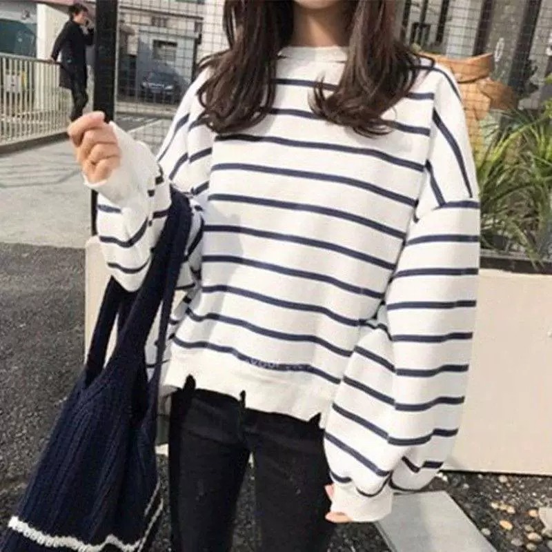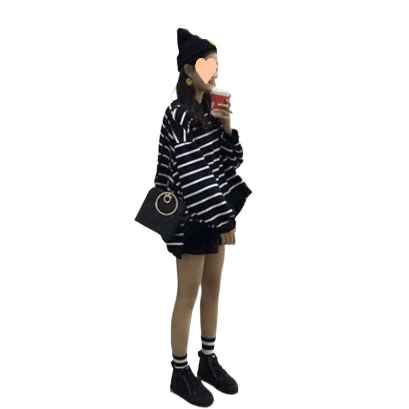 Women's Loose Autumn And Winter Thermal Bottoming Shirt Striped T-shirt